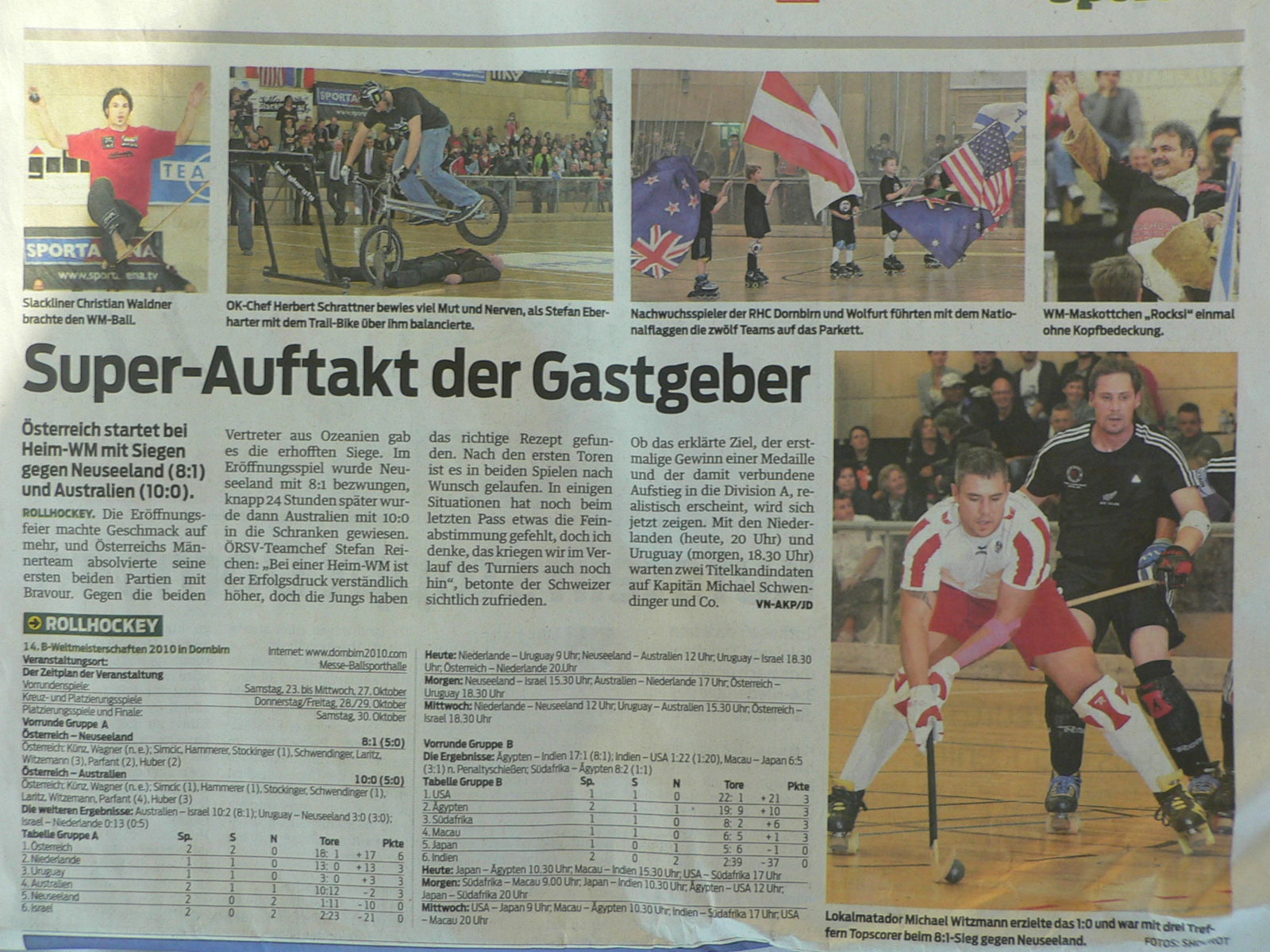 But looking on the bright side Austria just beat Nederlands 3 - 0 therefore today NZ are the only country to score against Austria in front of there home crowd, with Mark Turner scoring with a Rob Vazey assist. Check out the TV highlights on the World Champs 2010 page.